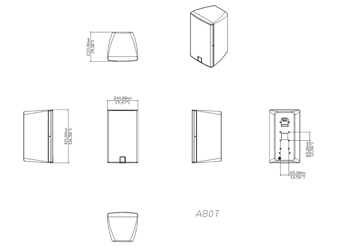 A80Tは、高性能なバックグラウンド/フォアグラウンドシステムに最適です。8インチLFドライバーと1インチHFドライバーを搭載し、120dBピークの高出力を実現。63Hzまで伸びる力強い低音と、スムーズな周波数特性を誇ります。